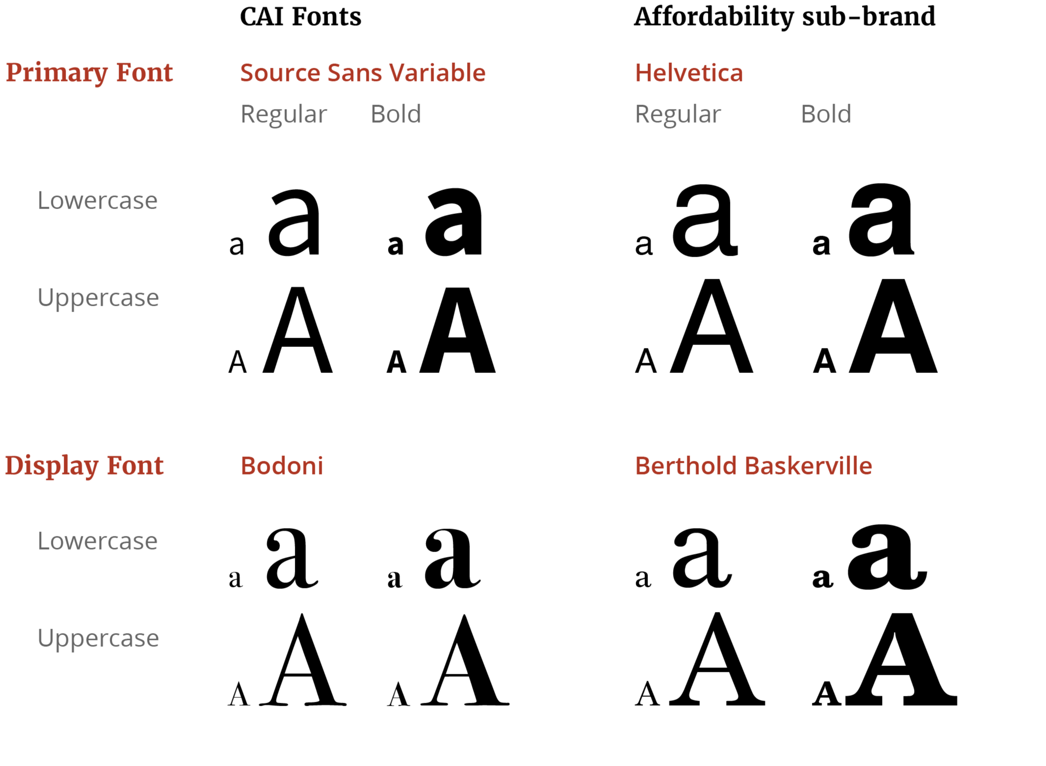 To stay close to recognizable public transit branding, we changed our arrange of fonts from CAI’s typical typefaces to ones that more closely matched what you see on a subway. This made Helvetica an obvious choice as the primary font, and Berthold Baskerville gave a nice compliment for headers and display cases.